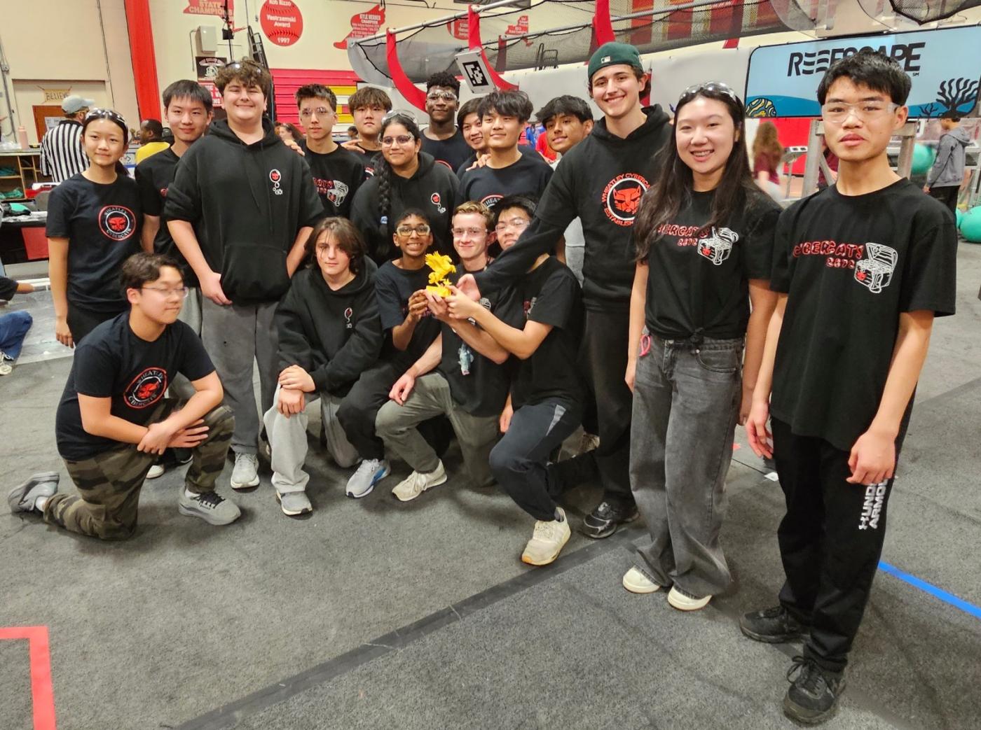 Team #2872 “Cybercats” from The Wheatley School poses with their trophy after winning the 13th Annual Kenneth R. Vessey Jr. Invitational at Half Hollow Hills High School West on October 26.